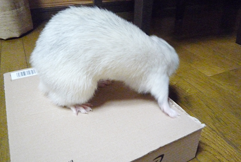 飼い主がワタシの頭になにか貼って行きました。
