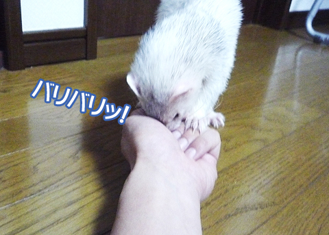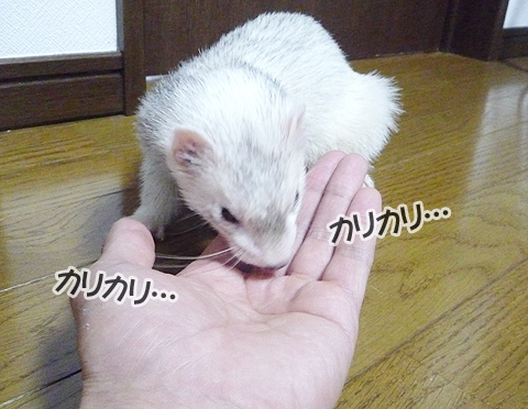 あっ、手の中にはフェレットフードが!